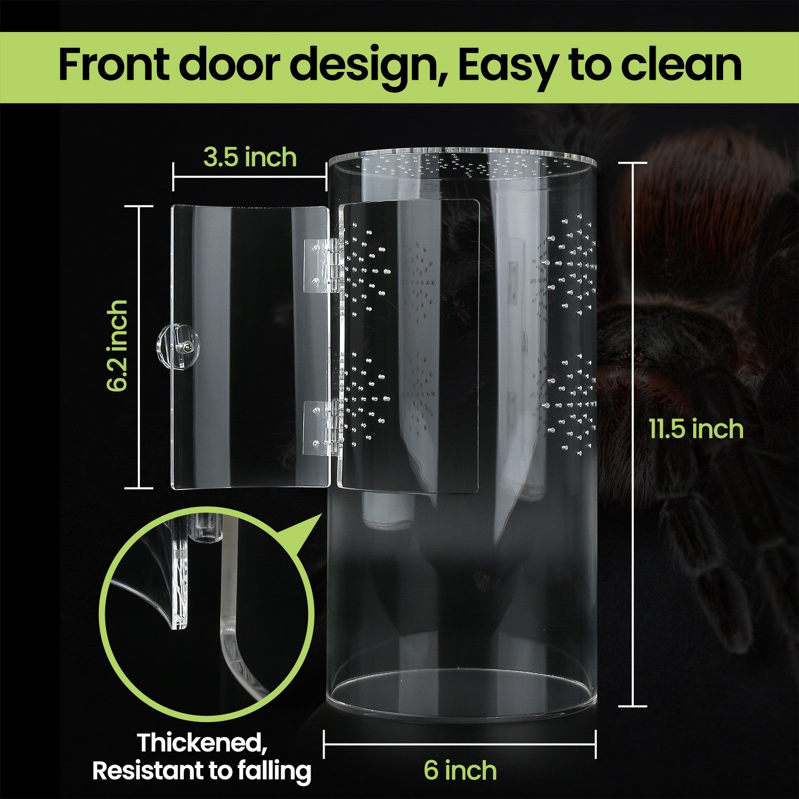 - Size: 6”(W) X 6”(D) X 12”(H), perfect for small reptiles and Invertebrates, such as jumper spider, mantis, snails, arboreal tarantula, tree frog etc.